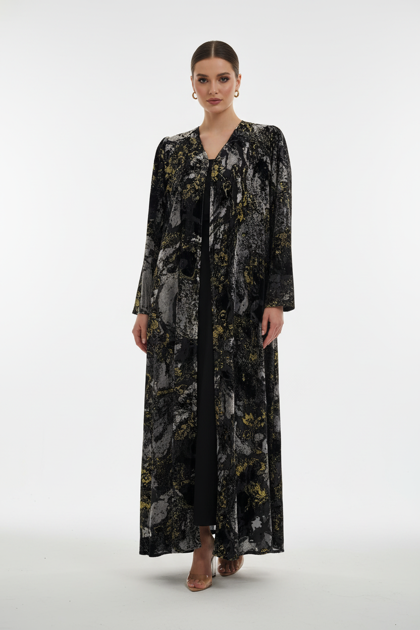مثالية للمناسبات الخاصة، والتجمعات الأنيقة، أو لإضفاء لمسة مميزة على إطلالتك اليومية المحتشمة، تجسد هذه العباية المميزة من دبي التزام CAS Abaya بالجودة العالية والتصميم الراقي. يمنحها مزيج متناغم من لمسات الفضة والذهب قطعة متعددة الاستخدامات، تنتقل بسلاسة من إطلالة النهار إلى إطلالة المساء.