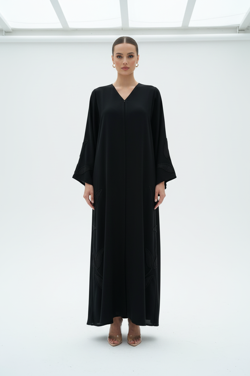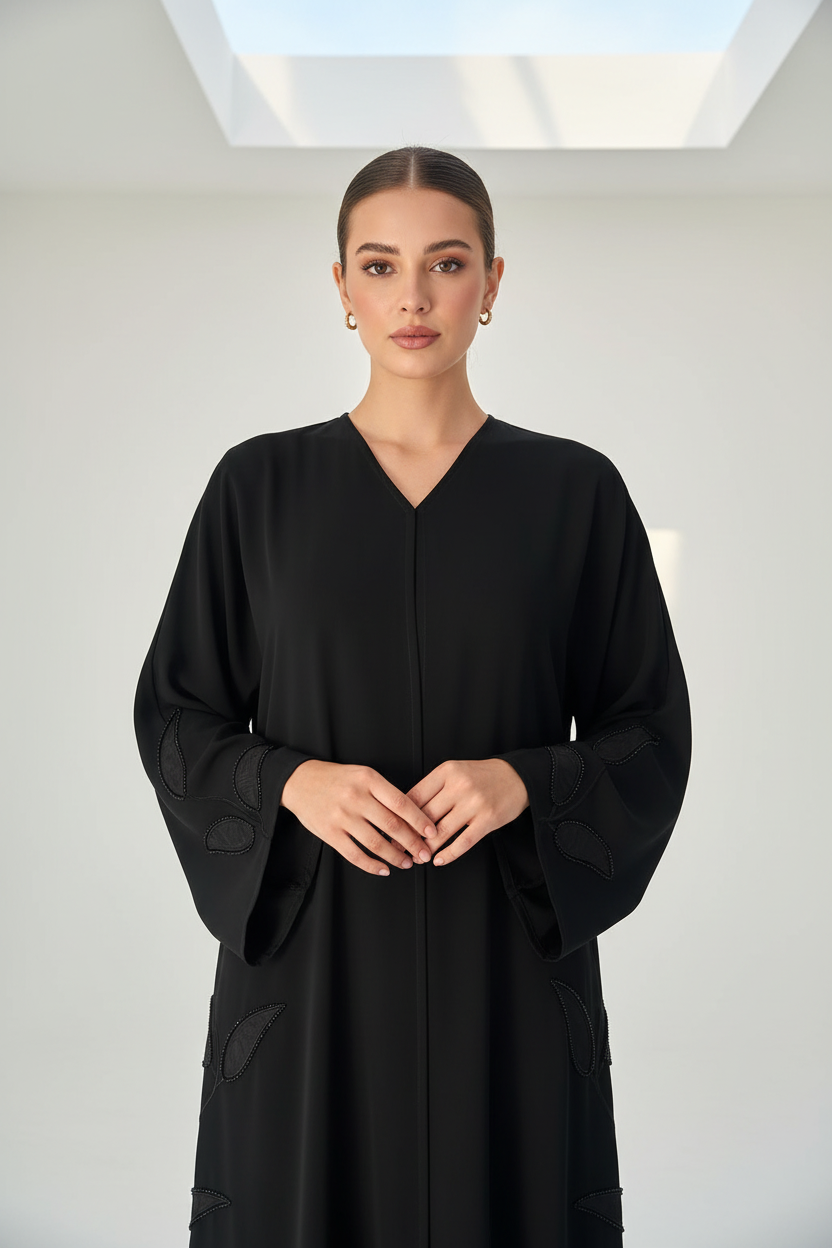 من حفلات الزفاف في الحدائق إلى السهرات الأنيقة، تُضفي هذه العباية الفاخرة من دبي سحراً آسراً. تُضفي تفاصيل الخرز المُستوحاة من أوراق الشجر جمالاً ثلاثي الأبعاد ورقياً طبيعياً، بينما يضمن قماش ندى الفاخر راحةً وأناقةً وانسيابيةً رائعة، مما يخلق توازناً مثالياً بين الفن الزخرفي والراحة العملية. اختاري هذه العباية الفاخرة من دبي التي تُبرز إبداع CAS Abaya في تصميم قطع عبايات دبي المميزة التي تُجسد جمال الطبيعة والحرفية العالية، مما يجعلها إضافةً مميزةً إلى مجموعتكِ من العبايات الفاخرة في الإمارات.