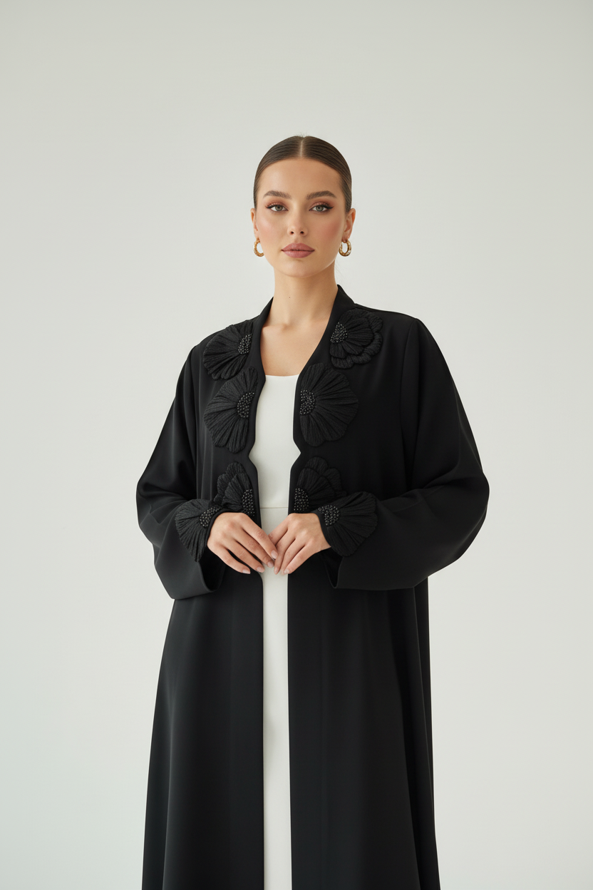 Step out in style with the Amira Abaya, crafted in a sophisticated Black shade using premium crepe fabric for a lightweight, breathable, and flowing silhouette. Designed with modern Arabic clothing aesthetics, this abaya provides a graceful and modest look perfect for contemporary women.