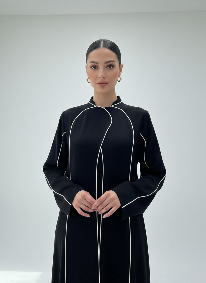 CAS Abaya presents the Black Striped Abaya, a sophisticated take on elegant Emirati abaya style inspired by modern abaya Dubai fashion. Crafted from premium crepe fabric, this luxury Dubai abaya offers a lightweight feel, smooth texture, and graceful movement. Subtle stripe detailing adds contemporary character while maintaining a modest, refined silhouette ideal for work, gatherings, or special occasions for women seeking everyday elegance and comfort.