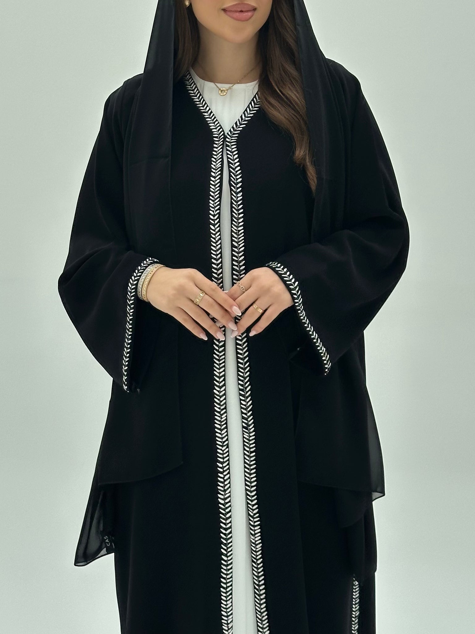 Celebrate artisanal excellence with the Black Embroidered Abaya C 1943 from CAS Abaya, where intricate embroidery adorns premium Crepe fabric to create a signature Dubai abaya of exceptional beauty. Hand-stitched embroidery patterns add texture and visual depth, showcasing the skill of master craftsmen. This designer abaya UAE appeals to the elegant Emirati abaya collector who values traditional needlework techniques and timeless sophistication.