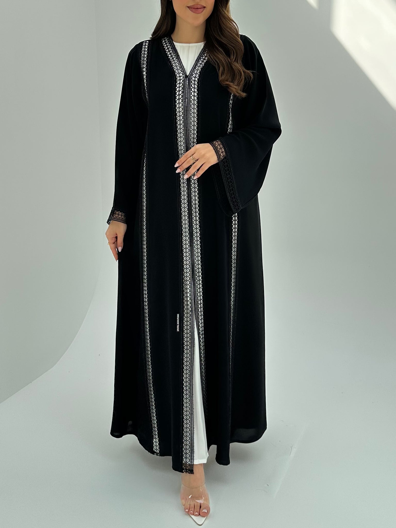 Experience elegance with the Black Lace Abaya by CAS Abaya, crafted from premium Nada fabric for a lightweight and luxurious feel. The intricate lace detailing adds sophistication and charm, making it a standout Luxury Dubai abaya for special occasions, formal events, or elevated everyday wear. Its flowing silhouette ensures comfort while reflecting the artistry of a Designer abaya UAE, combining classic modest fashion with contemporary refinement.