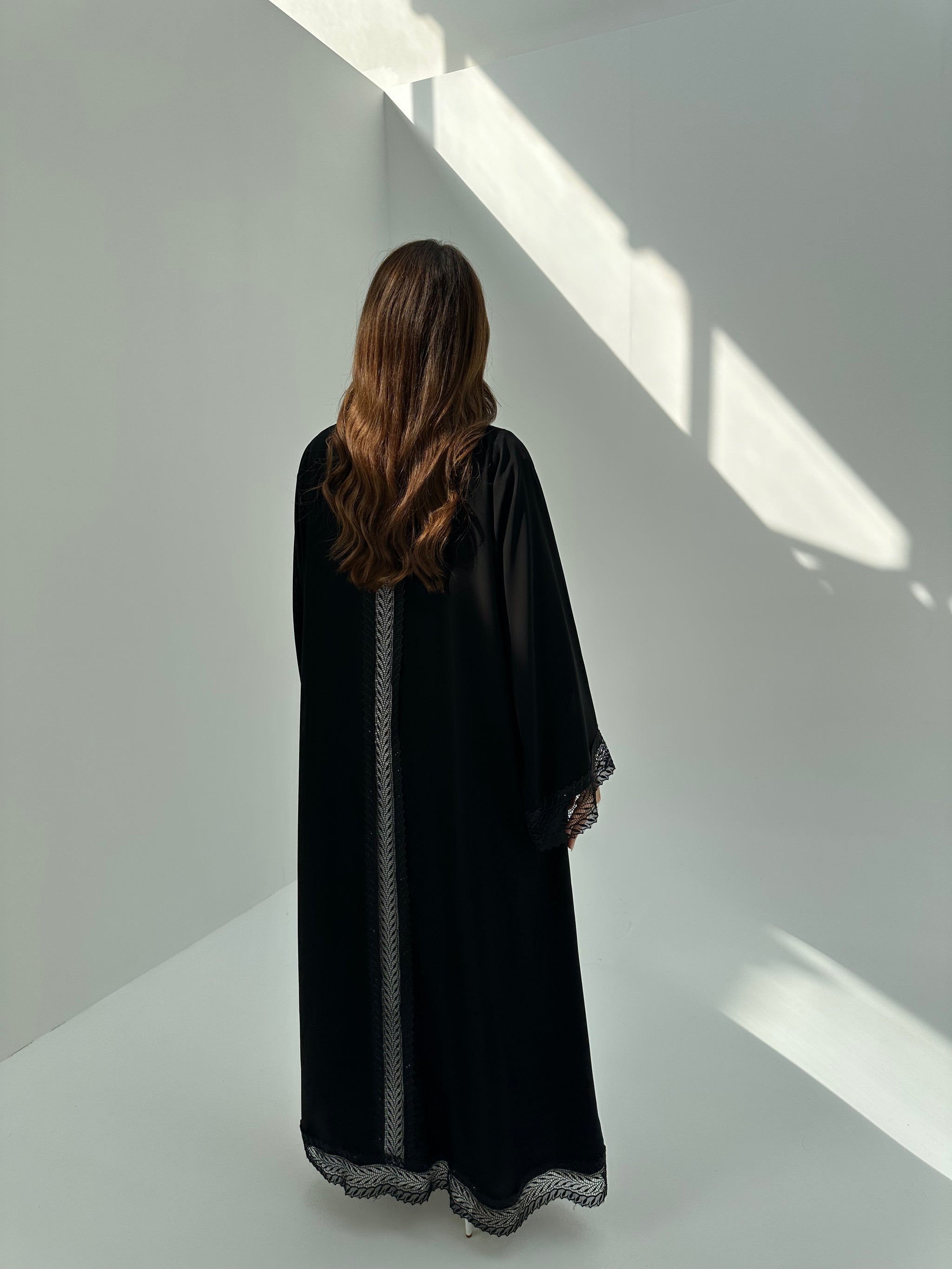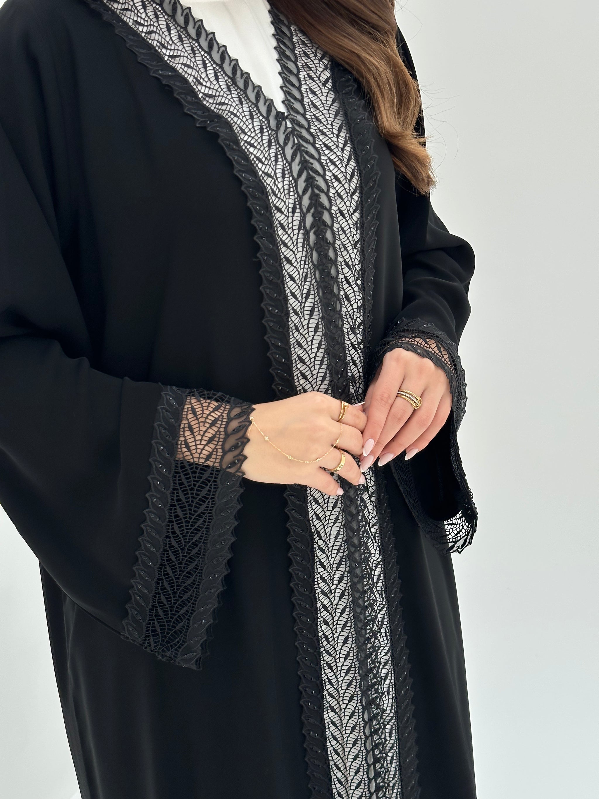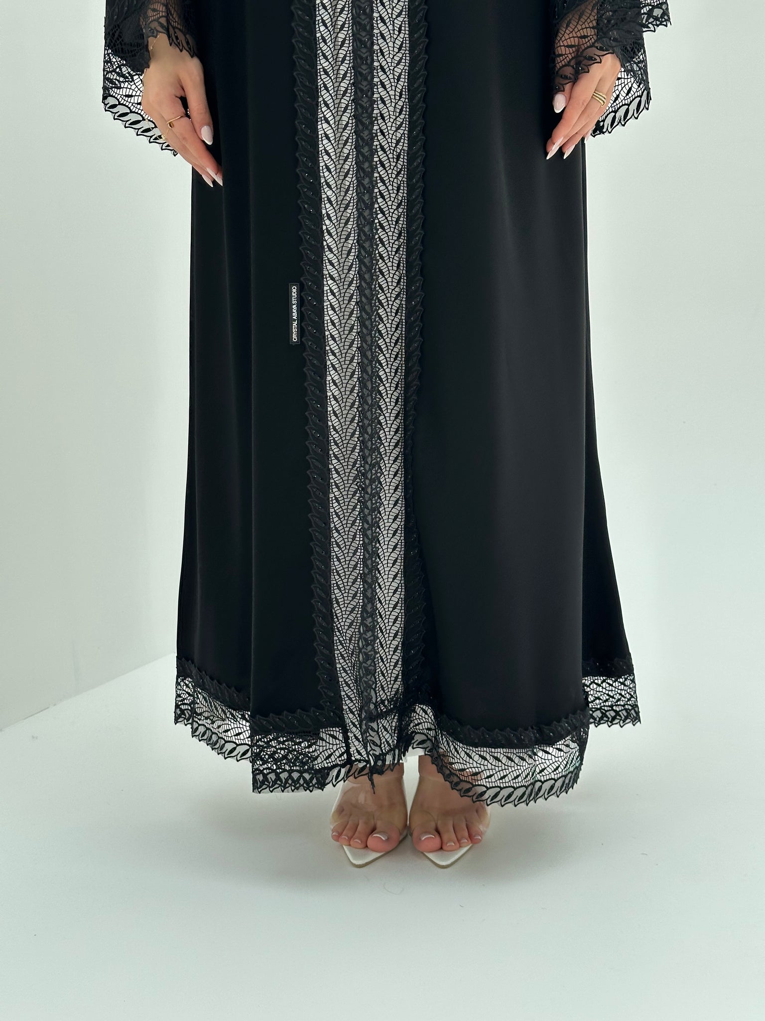 Shine with sophistication in the Black Crystal Lace Abaya by CAS Abaya, crafted from premium Nada fabric for a lightweight, luxurious feel. Embellished with delicate crystal lace detailing, this Luxury Dubai abaya exudes elegance and glamour, making it ideal for formal events, evening gatherings, or special occasions. Its flowing silhouette ensures comfort while maintaining the refined craftsmanship of a Designer abaya UAE, blending modern style with traditional Emirati modest fashion.