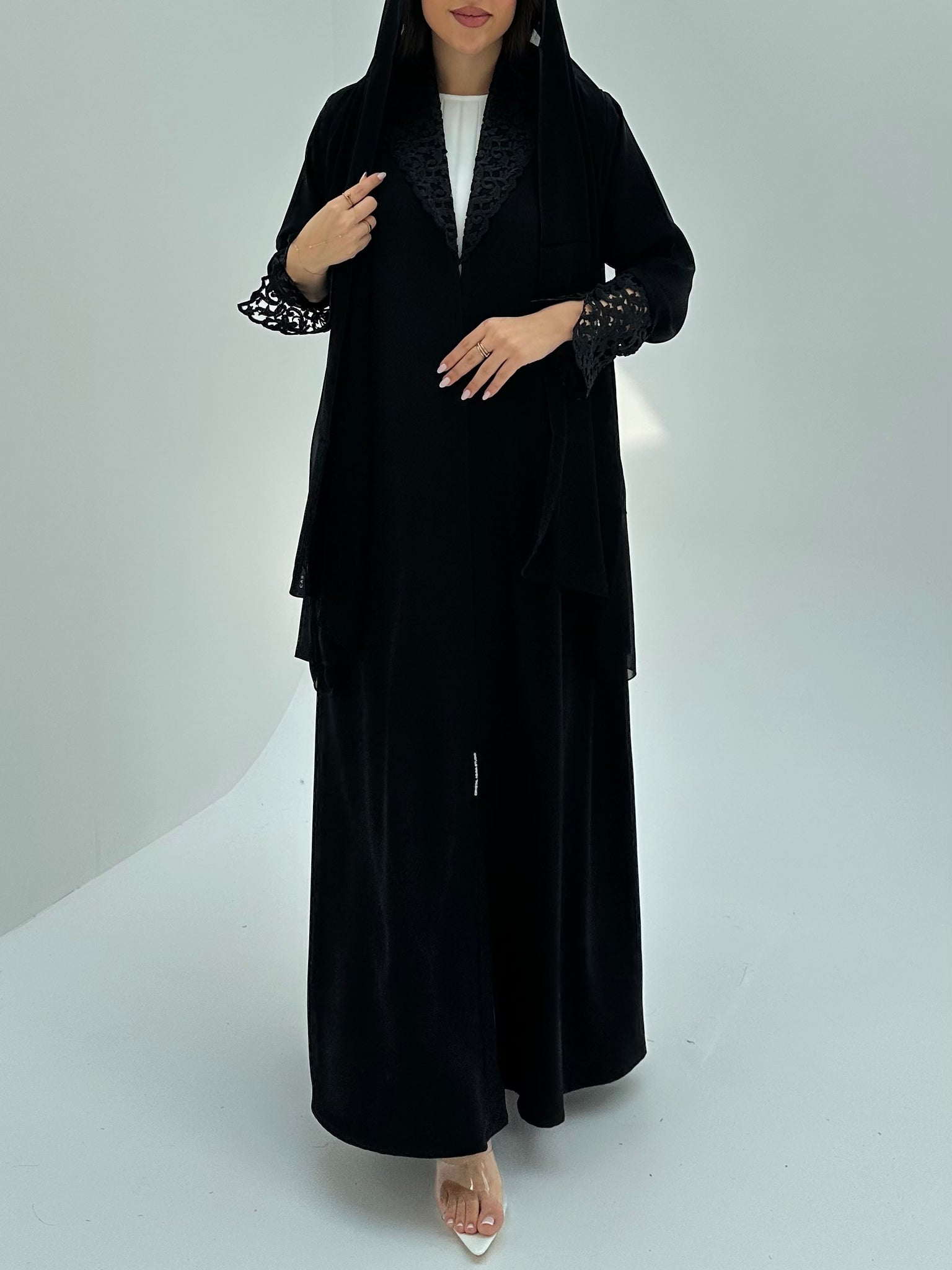Discover refined elegance with the Black Lace Abaya by CAS Abaya, crafted from premium Nada fabric for a lightweight, graceful drape. Intricate lace detailing elevates this Luxury Dubai abaya, ideal for formal occasions, evening gatherings, or polished everyday wear. A flowing silhouette enhances comfort while reflecting Elegant Emirati abaya heritage and meticulous Designer abaya UAE craftsmanship. Its timeless black palette complements modern abaya Dubai styling and versatile wardrobes worldwide appeal.