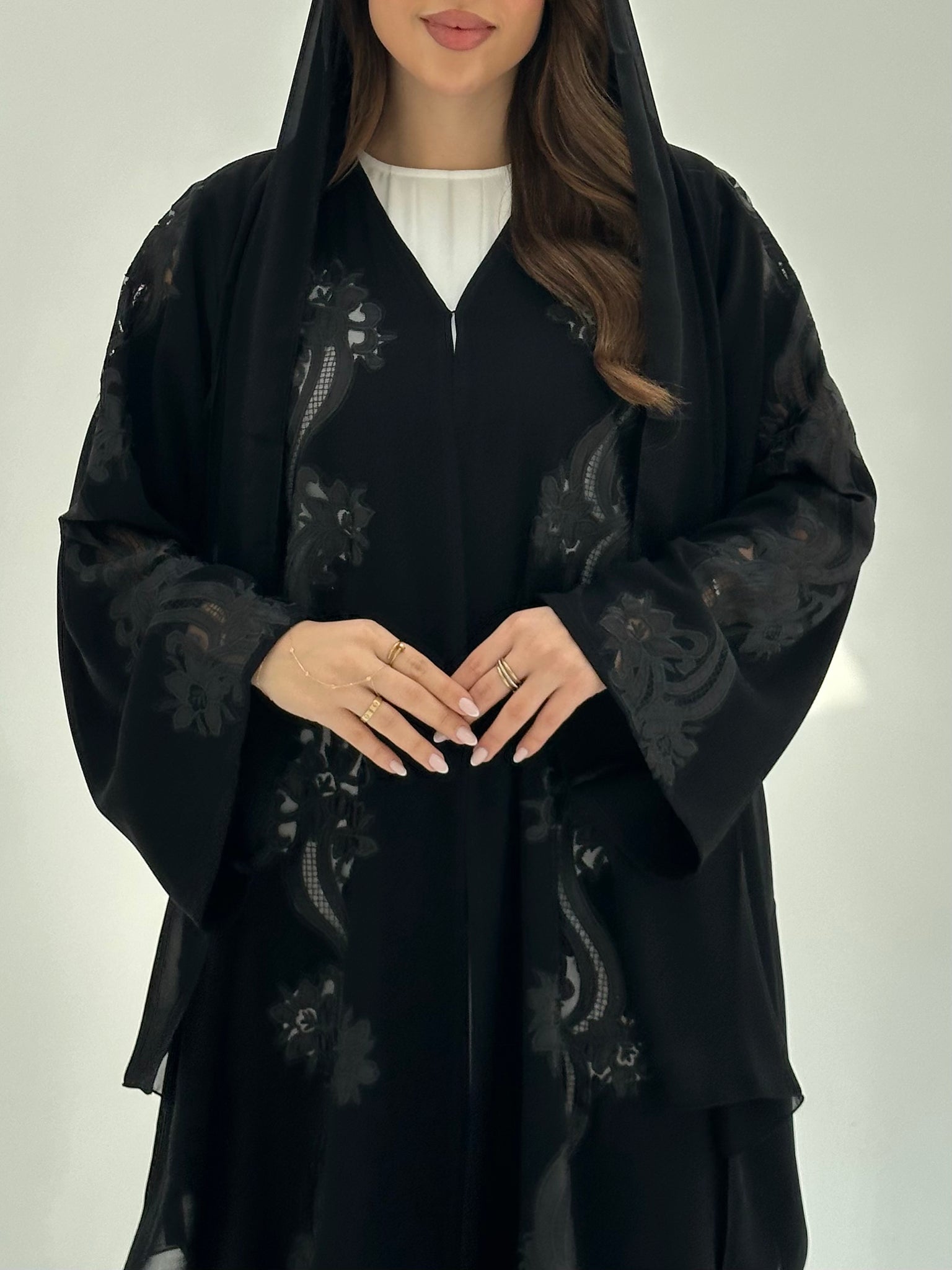 Elevate your modest wardrobe with the Black Lace Abaya by CAS Abaya, crafted from premium Nada fabric for a lightweight, elegant, and smooth drape. The refined lace detailing enhances its feminine appeal, making it a timeless Luxury Dubai abaya suitable for formal occasions, evening gatherings, or sophisticated daily wear. Its flowing silhouette offers comfort while reflecting the heritage of an Elegant Emirati abaya, designed with attention to quality and modern aesthetics.