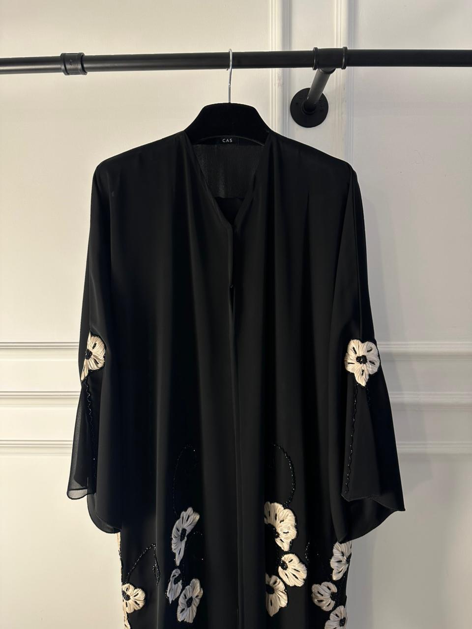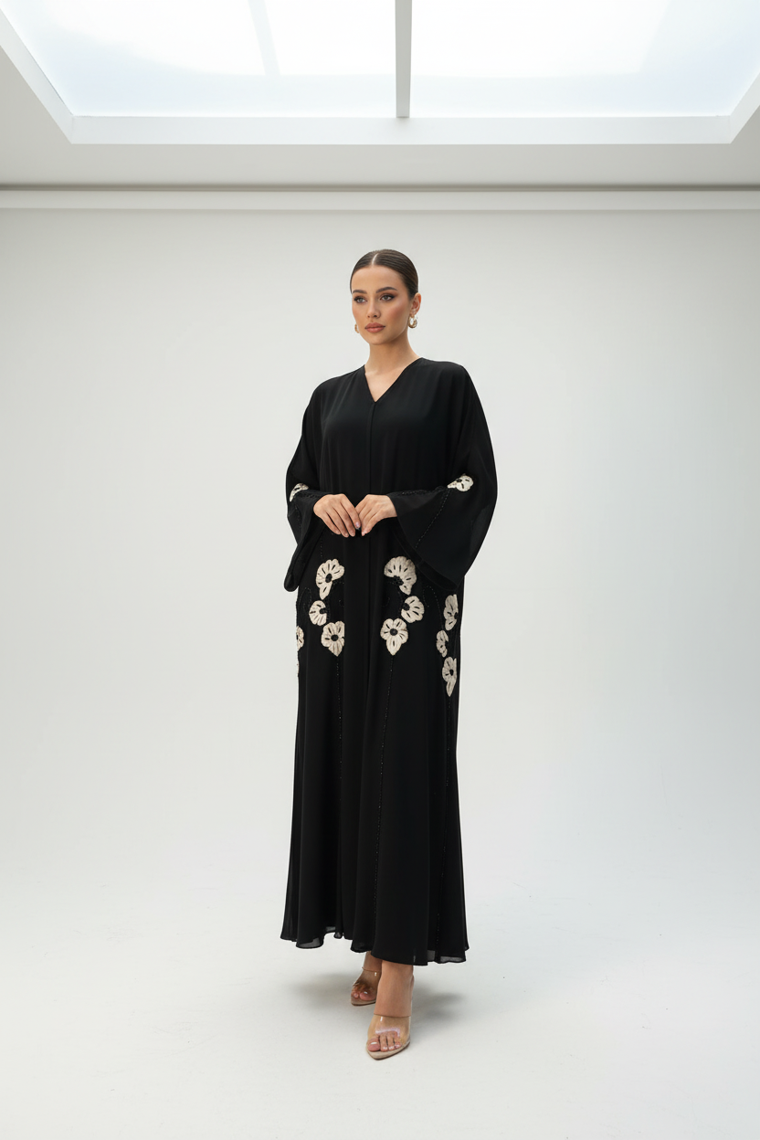 Discover the enchanting C 1917 Black Floral Beaded Abaya from CAS Abaya, where nature-inspired artistry meets luxury Dubai abaya craftsmanship. This designer abaya UAE showcases exquisite floral beadwork that creates a captivating botanical pattern, making it a true signature piece for the modern Emirati woman who appreciates refined elegance and artistic detail.
