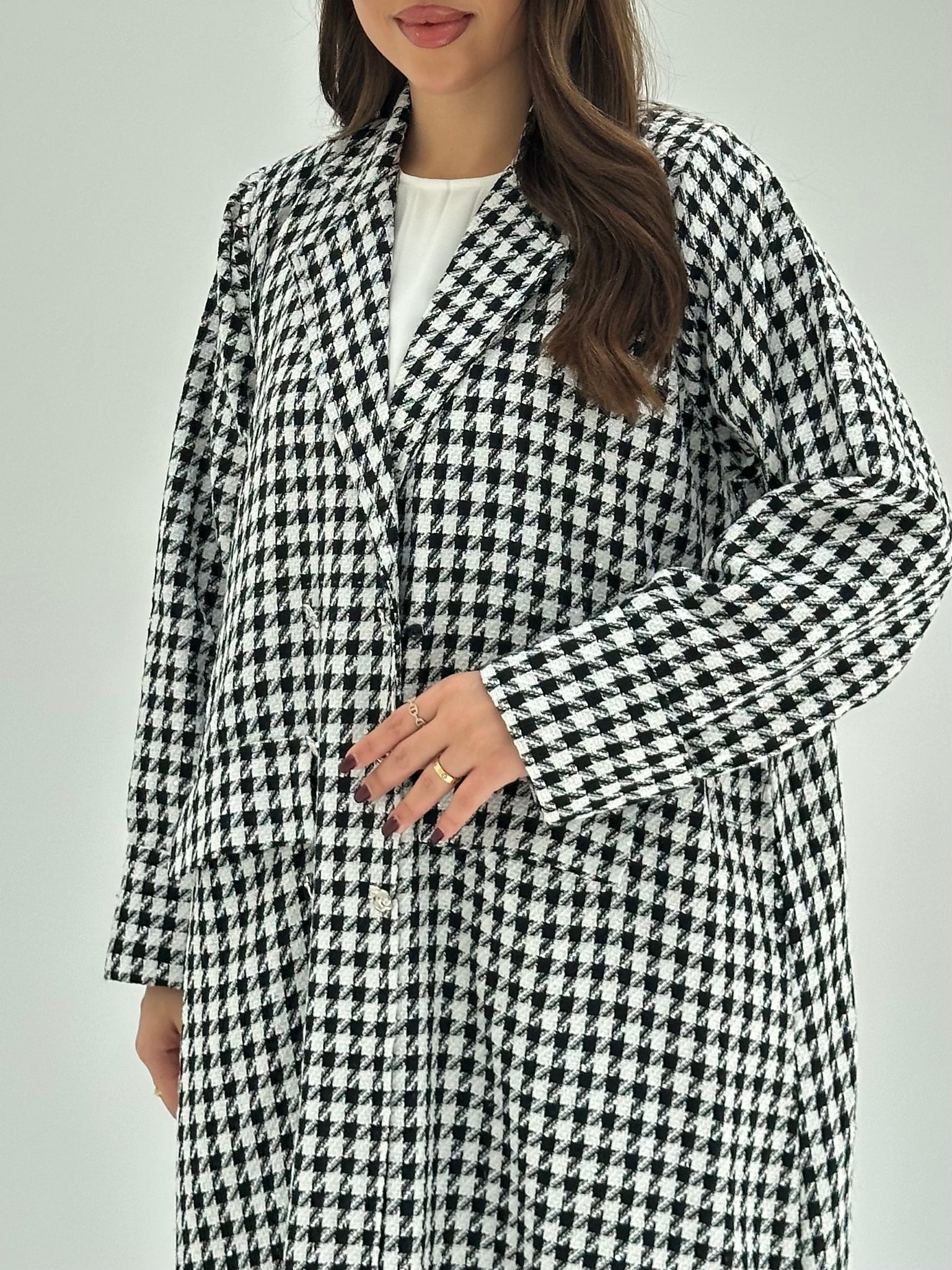 Make a chic statement with the Black White Tweed Abaya, crafted from premium tweed fabric for a structured yet elegant look. The sophisticated black-and-white pattern adds timeless versatility, making it perfect for Ramadan, Eid, formal gatherings, or upscale casual events. This designer Dubai abaya combines modern style with luxury modest fashion, offering comfort, refinement, and a polished silhouette for any occasion. Ideal for women who love high-end, contemporary abayas.