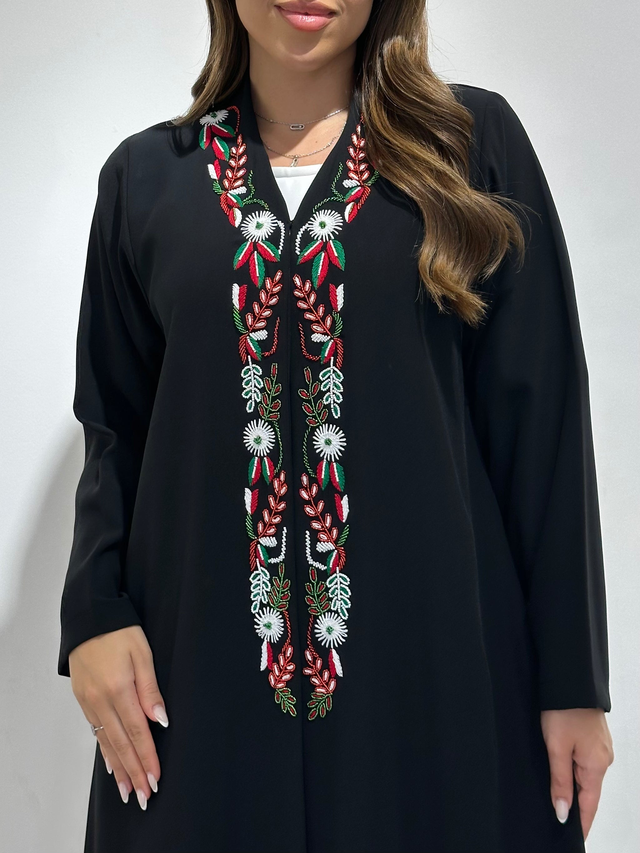 Elegant, symbolic, and beautifully detailed — the Emirati Embroidered Abaya in Crepe is a proud expression of national identity and refined modest fashion. Made from premium crepe fabric, this abaya features delicate embroidery inspired by the UAE flag colors, representing unity, pride, and the strength of Emirati women.