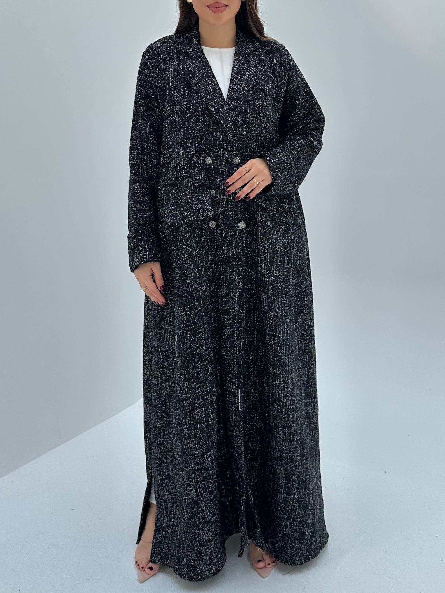 Step into contemporary modest fashion with this Black Tweed Abaya – New Designer Edition. Crafted from premium tweed fabric, it features a modern cut and subtle textural details that elevate the classic black abaya. Perfect for Ramadan, Eid, formal gatherings, or upscale events, this designer Dubai abaya offers both sophistication and comfort. Its tailored silhouette ensures a flattering fit while the tweed texture adds a stylish, high-end finish for women who love luxury modest wear.