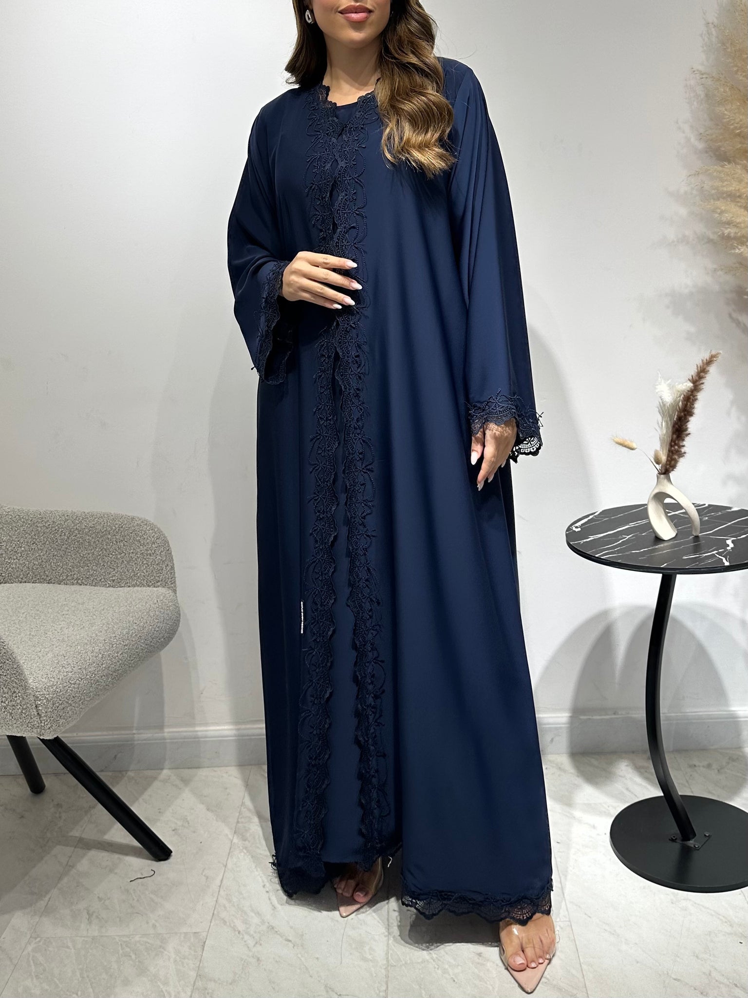 Soft, sophisticated, and refreshingly elegant — the Berry Blue Lace Abaya in Nada fabric is designed to make a subtle statement of luxury and grace. Crafted from premium Nada fabric, it features a smooth, matte finish that drapes beautifully, ensuring both comfort and refined structure. The delicate lace detailing adds a romantic and modern touch, enhancing the abaya’s overall charm.