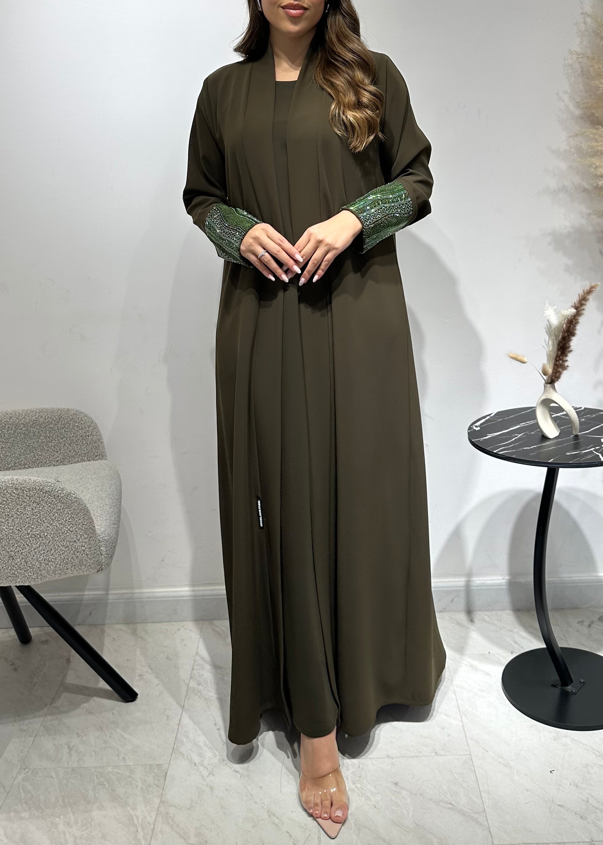 C 1551-02 Olive Beaded Abaya