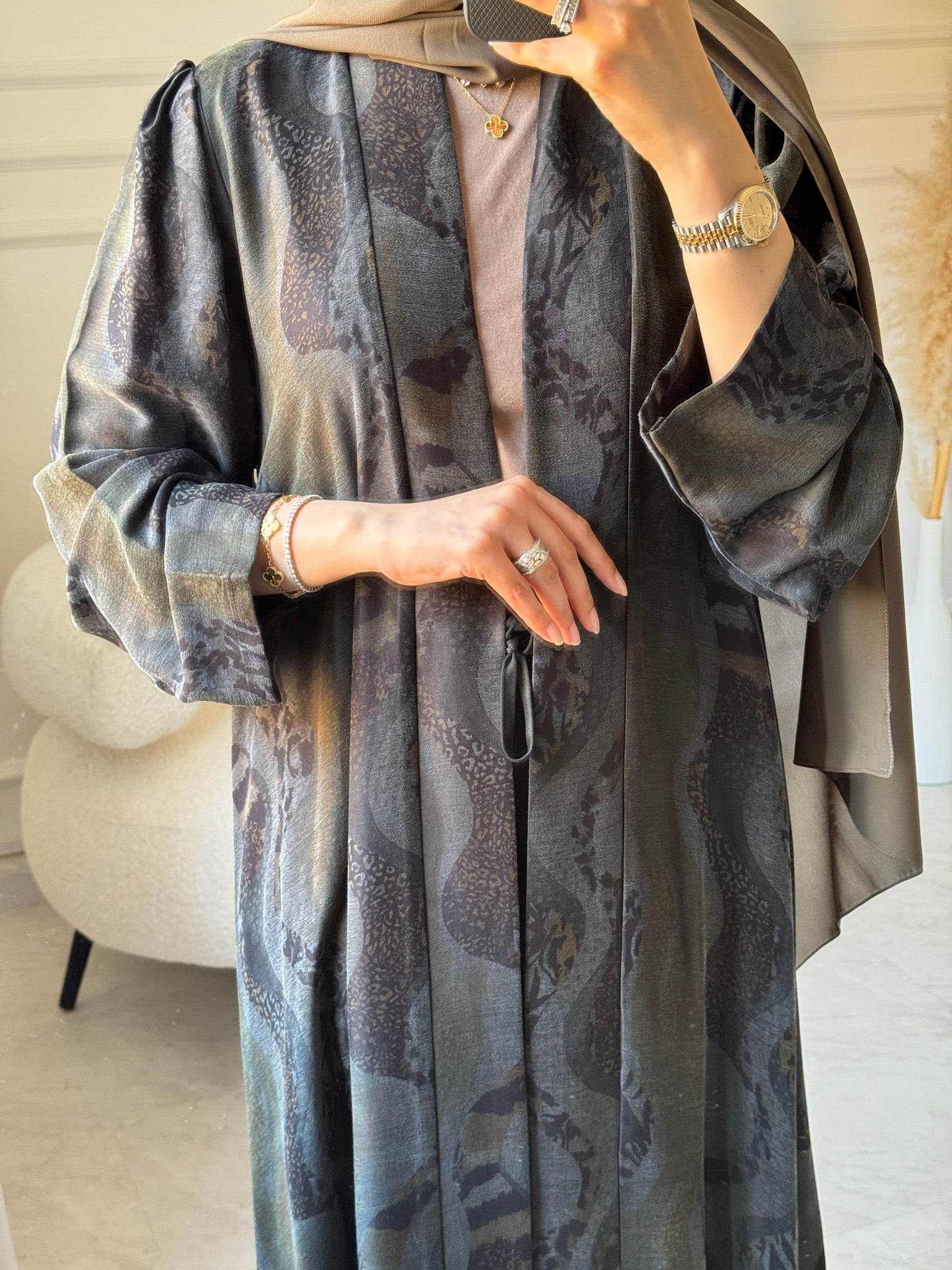Elegant and modern, the Sepia Grey Abaya in Turkish Cupro is crafted for women who love luxury fabrics paired with understated tones. Made from authentic Turkish Cupro, this abaya offers a silky-smooth finish with a breathable, lightweight drape, ensuring both comfort and sophistication.