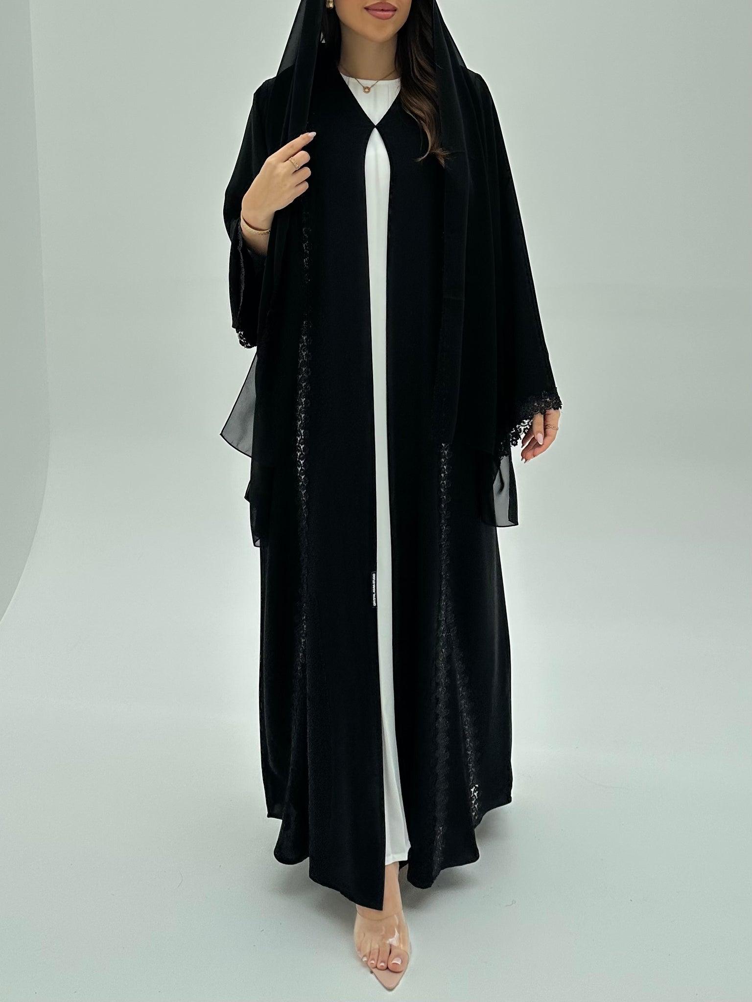 A few enhancements carry a small fee: for example, adding a full lining (batana) under the abaya is AED 70, adding an extra chiffon layer is AED 100, and extending the sheila beyond the standard length costs AED 40. We’ll always tell you about any charges before completing your order.