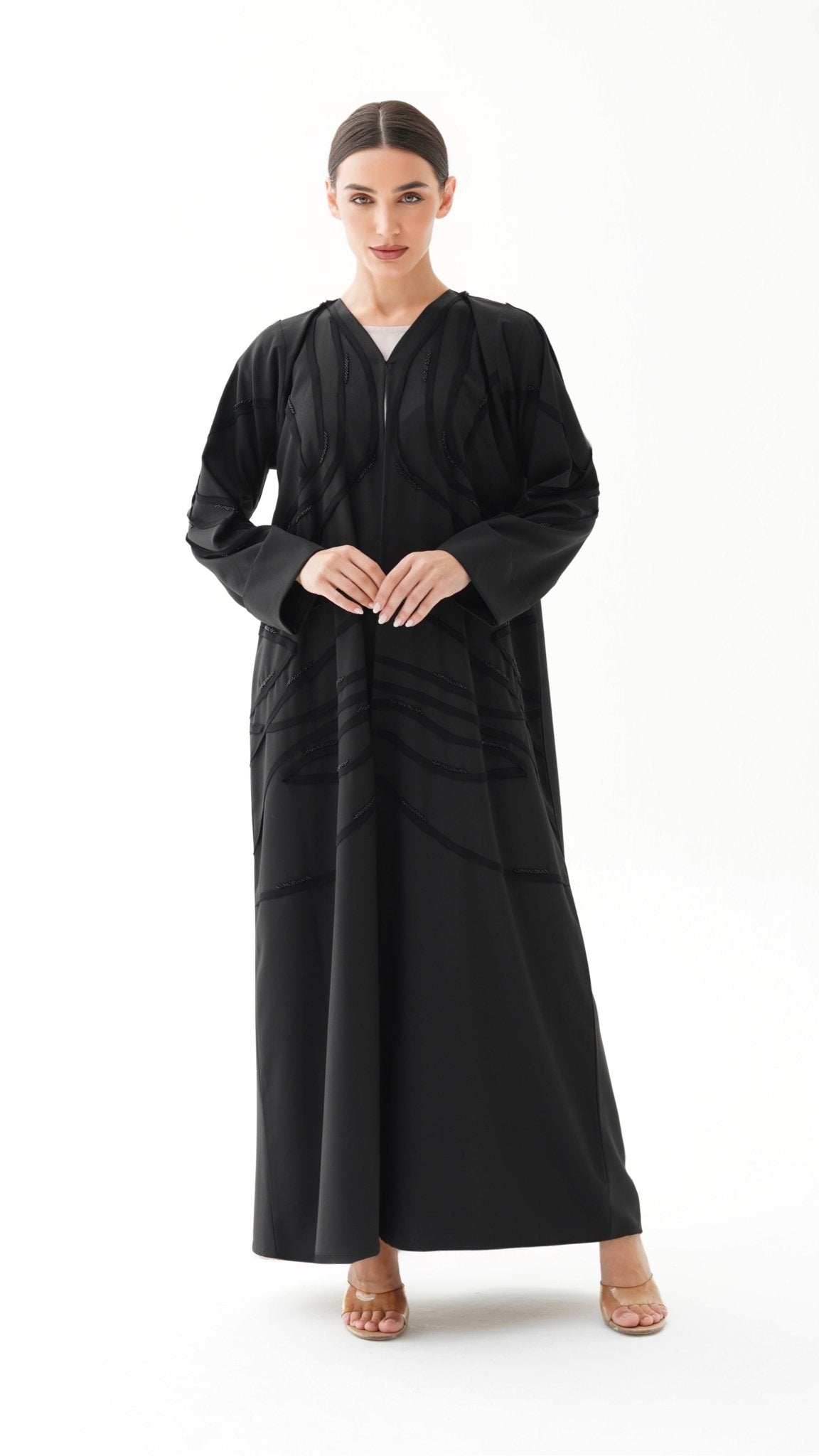 Whether worn as a travel abaya, a premium Emirati abaya, or an office abaya, the Black Beaded Abaya is a statement piece that elevates modest fashion with class.