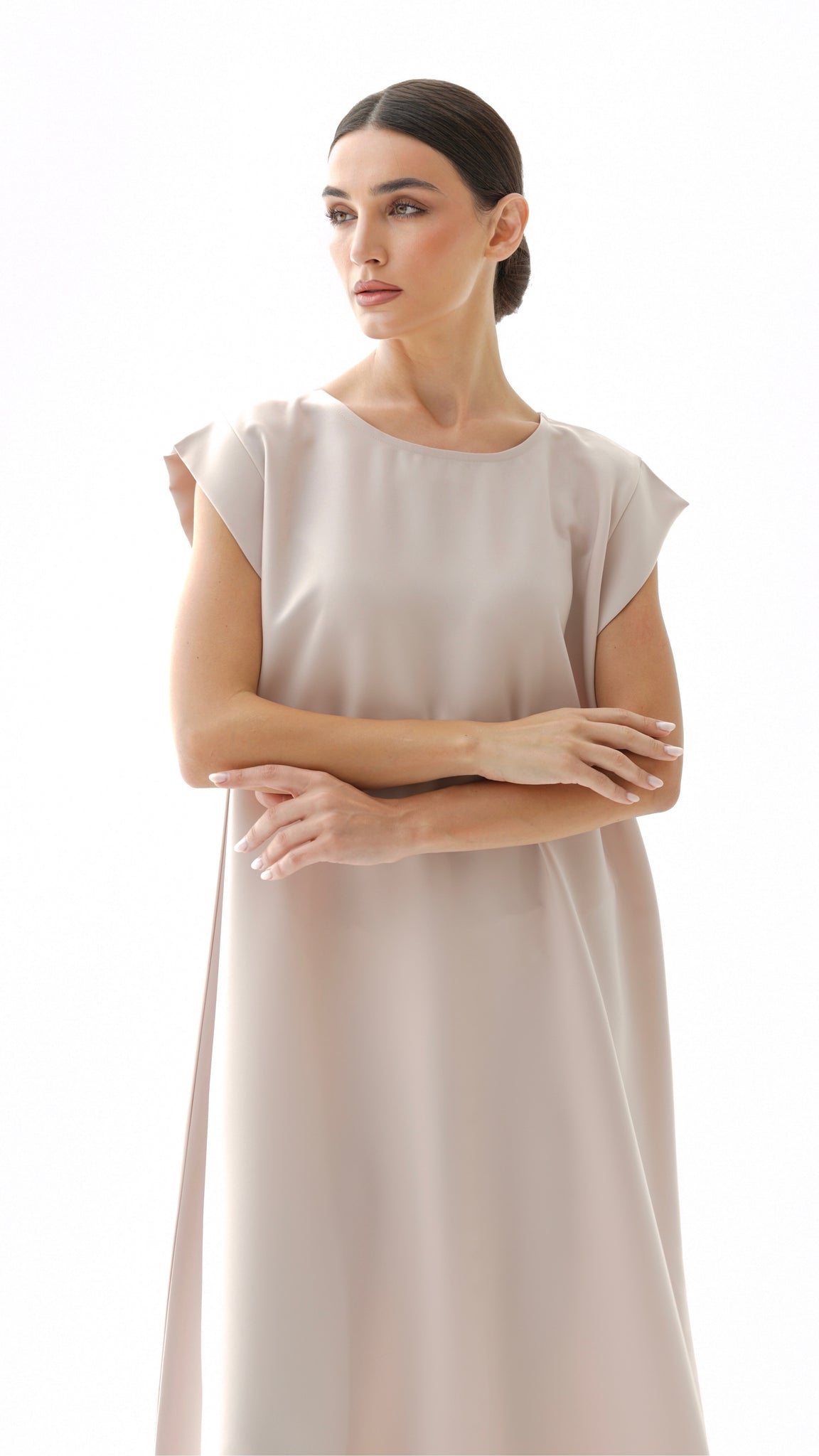 The neutral light beige shade adds timeless sophistication, pairing effortlessly with both bold and pastel abayas. Distinct in design from other under-abaya dresses in our collection, this piece is ideal for workwear, casual outings, or semi-formal layering. At CAS Basics, we proudly provide worldwide shipping, ensuring you can enjoy layering essentials wherever you are.