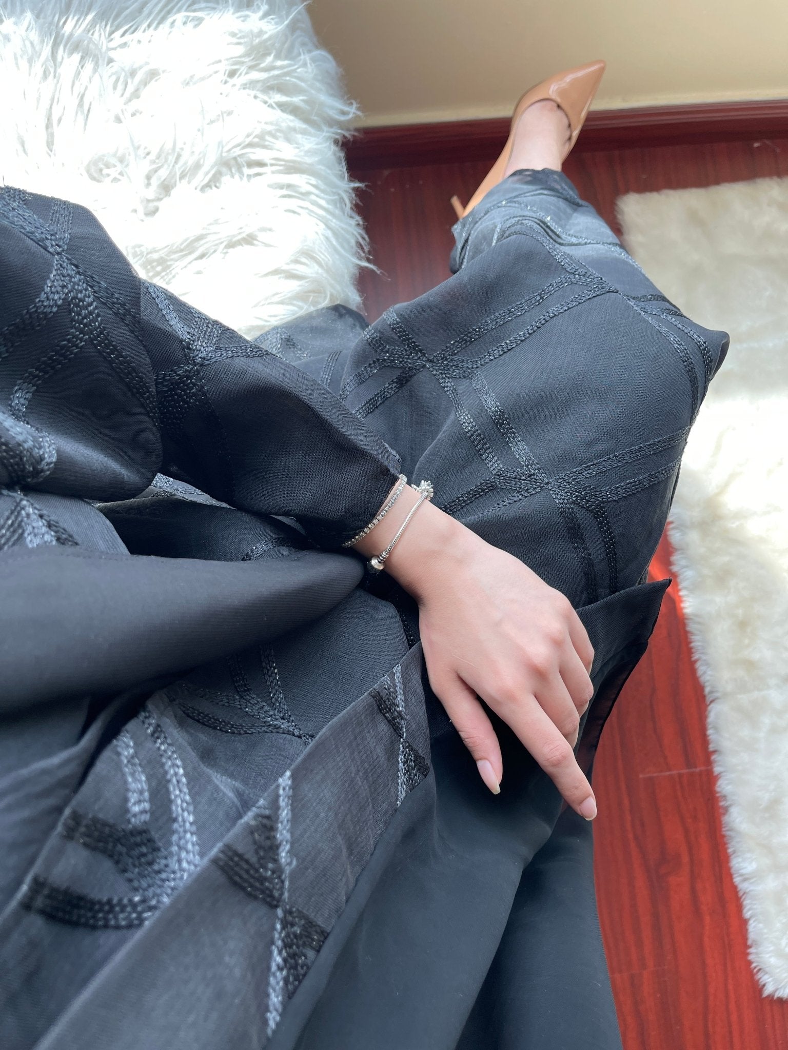 Bisht/Kloosh style diamond print abaya with straight sleeves.