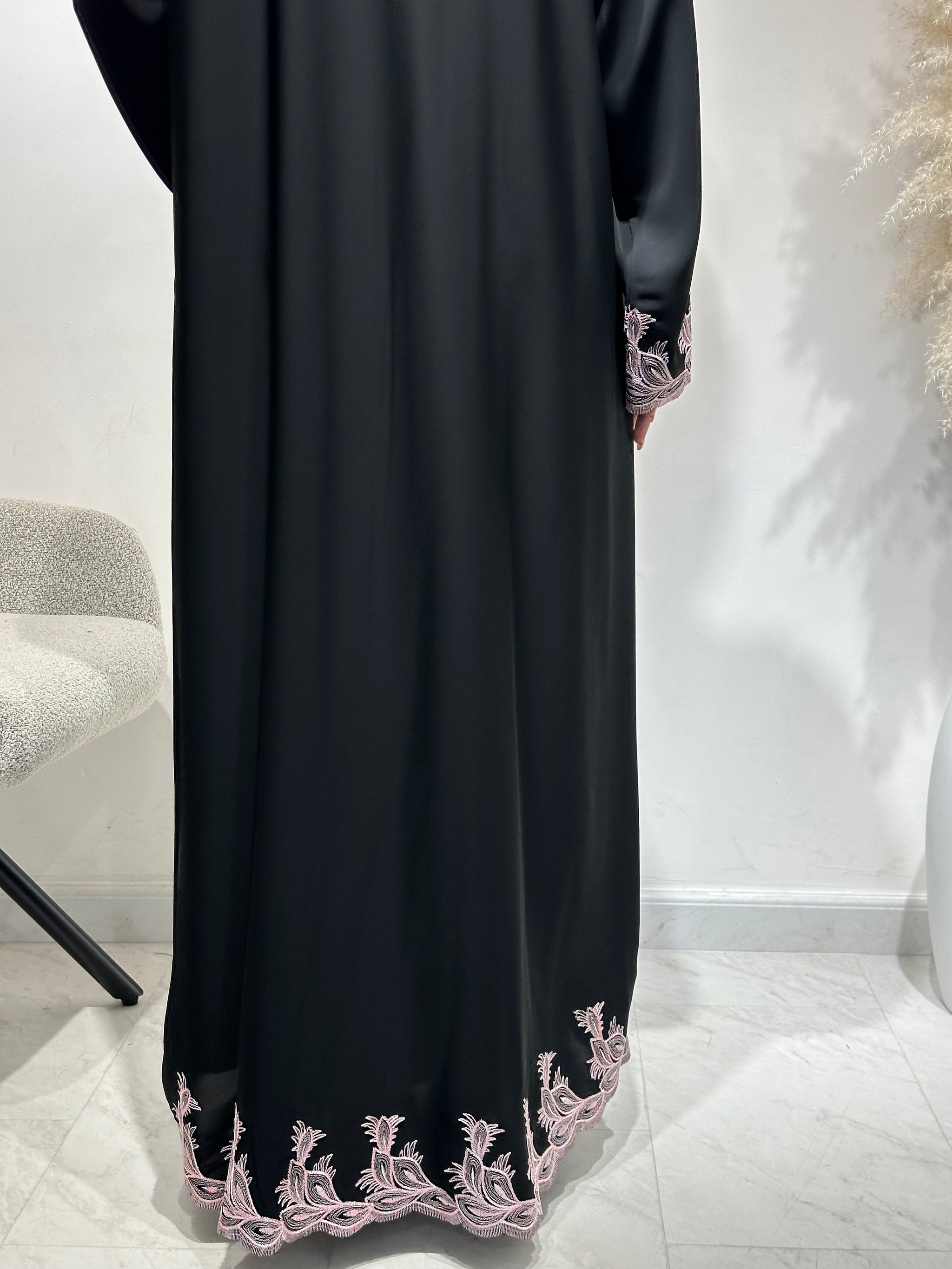 C 1642 Black Pink Embroidered Abaya