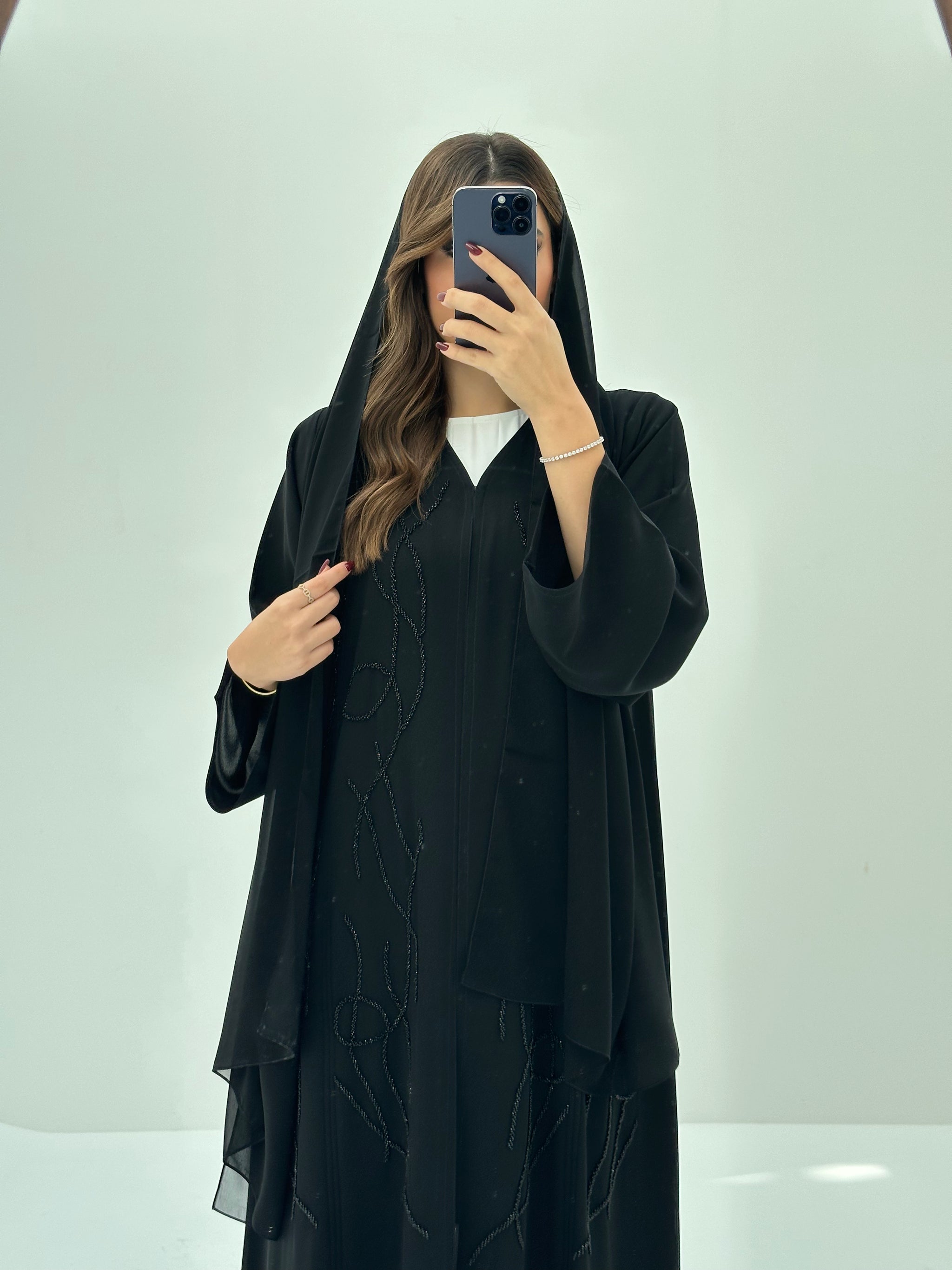 The Black Beaded Abaya by CAS Abaya is an elegant expression of refined modest fashion. Crafted from premium nada fabric, this black abaya UAE design offers a soft, lightweight feel with a graceful flow that enhances all-day comfort.