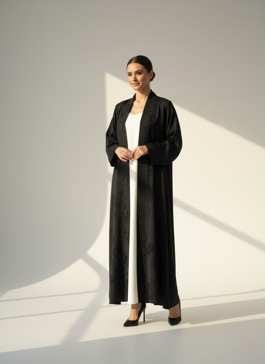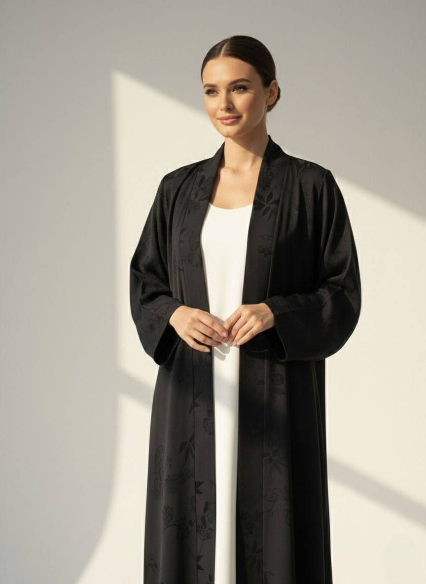 Experience timeless sophistication with the Black Printed Abaya from CAS Abaya, designed for women who appreciate refined modest fashion. Crafted from premium Turkish Cupro, this elegant Emirati abaya offers a soft texture, breathable comfort, and fluid drape. Inspired by Dubai abaya aesthetics, the subtle print adds depth and elegance, making it a luxury Dubai abaya perfect for everyday wear, gatherings, and special occasions across the UAE.