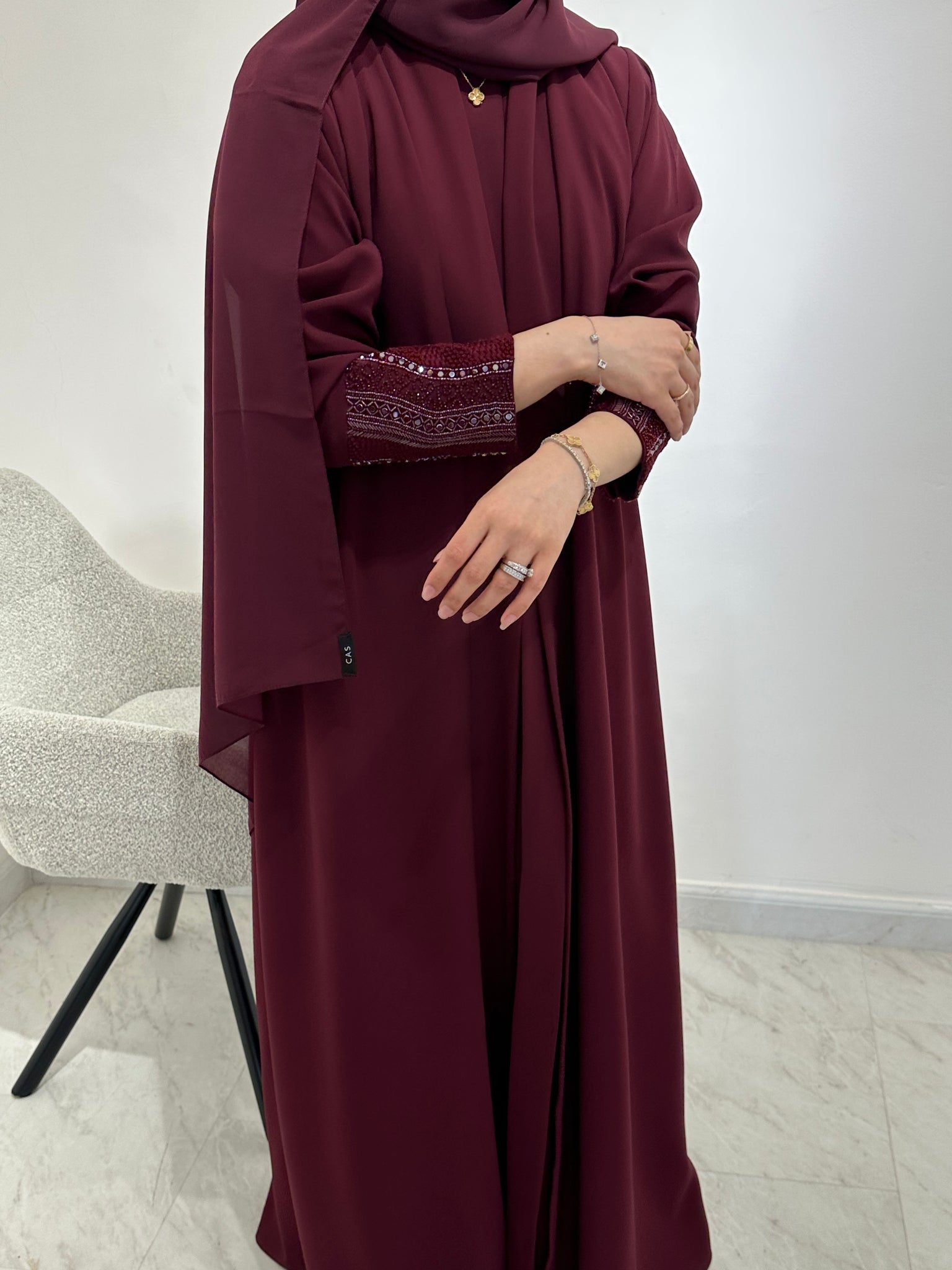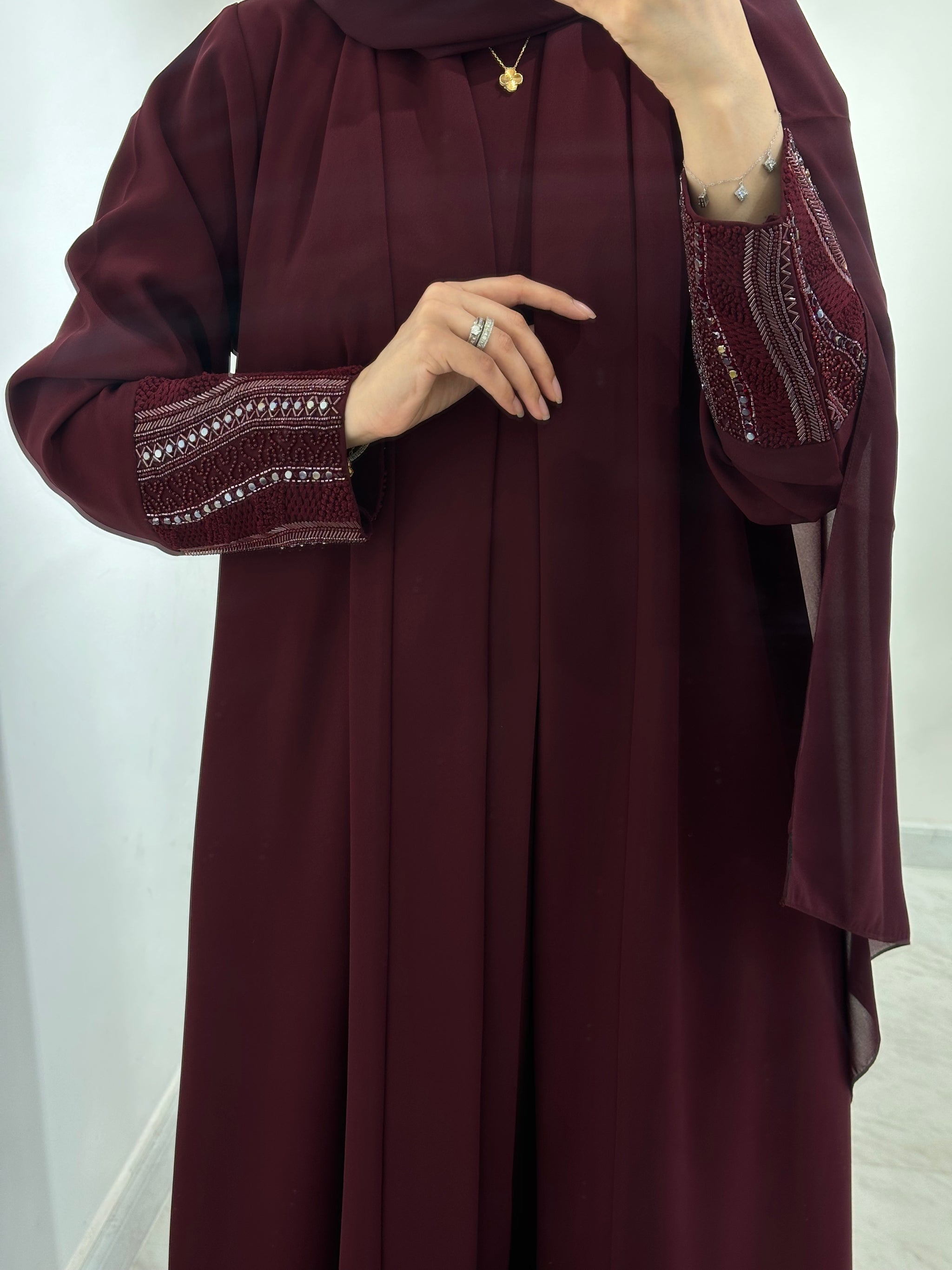 Elegant, airy, and effortlessly chic — the Burgundy Beaded Abaya in Chiffon brings sophistication and femininity together in one graceful design. Crafted from premium lightweight chiffon, this abaya flows beautifully with every step while keeping you comfortable throughout the day.