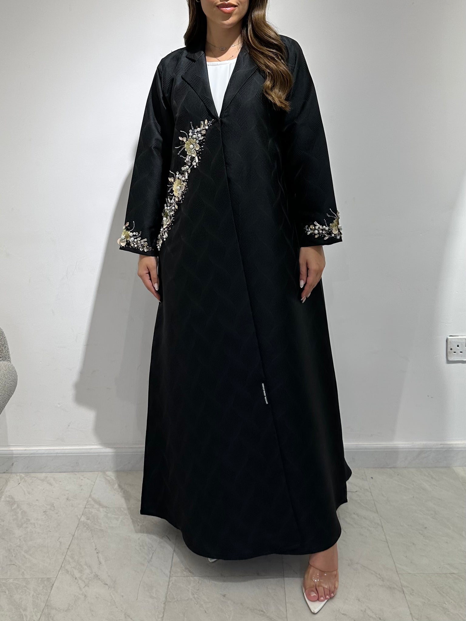 The structured yet flowing jacquard fabric ensures graceful movement, while the delicate floral bead detailing adds sophistication. Loved by ladies across the UAE, GCC, and worldwide, CAS Abaya is celebrated as one of the best abaya brands in UAE, delivering timeless designs for modern women.