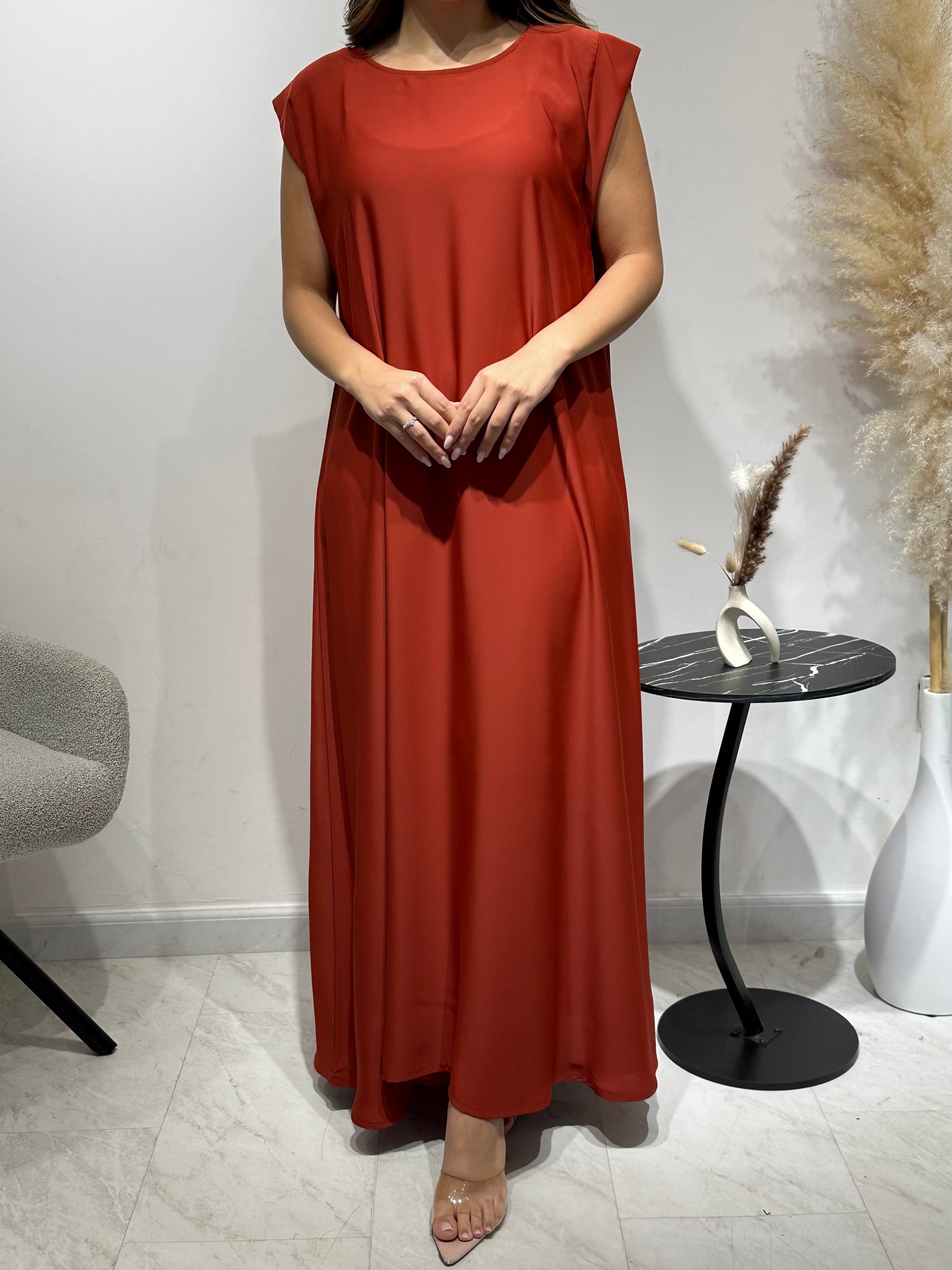 The burnt orange hue adds a pop of color while maintaining elegance, making this abaya an ideal choice for festive occasions, evening gatherings, or chic everyday wear. Lightweight and breathable, it delivers all-day comfort while exuding effortless grace.