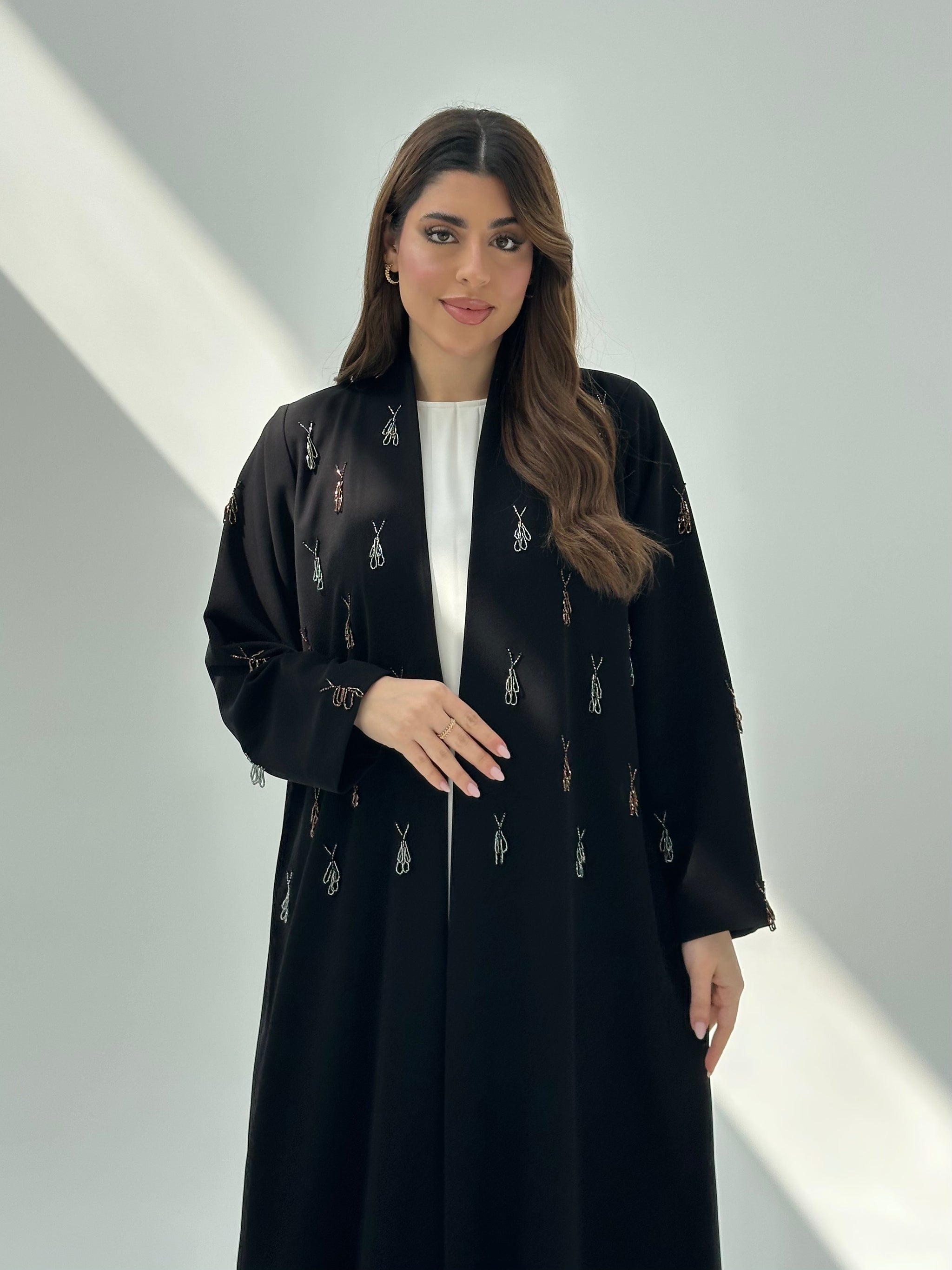 Celebrate timeless elegance with the Black Beaded Abaya C 2048 from CAS Abaya, where intricate beadwork adorns flowing Crepe fabric in classic black to create a luxury abaya Dubai of exceptional sophistication. The hand-applied beading adds texture and visual richness to the timeless hue, creating a piece that celebrates refined beauty while honoring artisanal craftsmanship. Perfect for the modern Emirati design collector who seeks pieces that combine classic colors with custom made abaya styling, this designer piece represents the perfect fusion of timeless elegance and refined artistry in modest fashion.